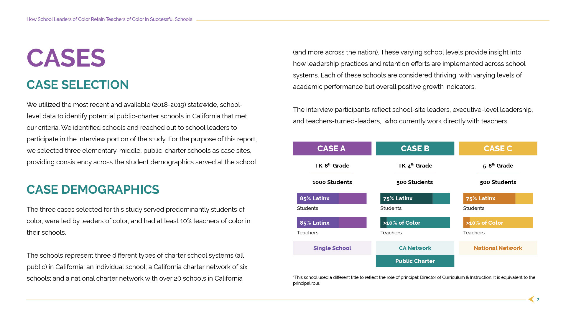 The Diversity in Leadership Institute produced a detailed research study focused on how school leaders of color retain teachers of color in successful public-charter schools. The organization needed a polished, multi-page report design that could carry the weight of the research—rich with data, interviews, and conceptual frameworks—while remaining easy to read, navigate, and reference.
